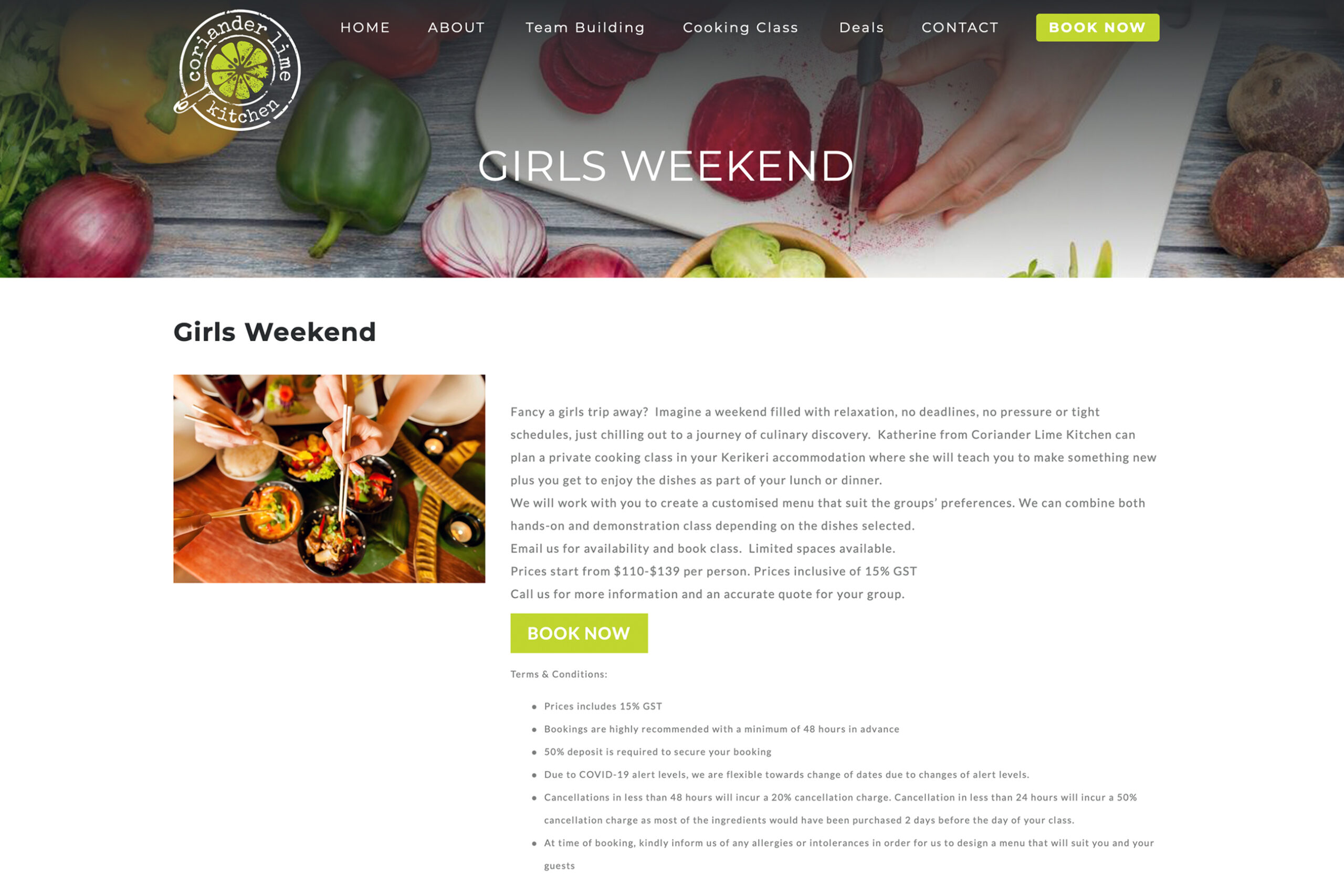 Coriander Lime Kitchen is a the only Asian cookery school in the region of Taupo, New Zealand. They offer weekly group classes as well as private lessons in addition to small private events.