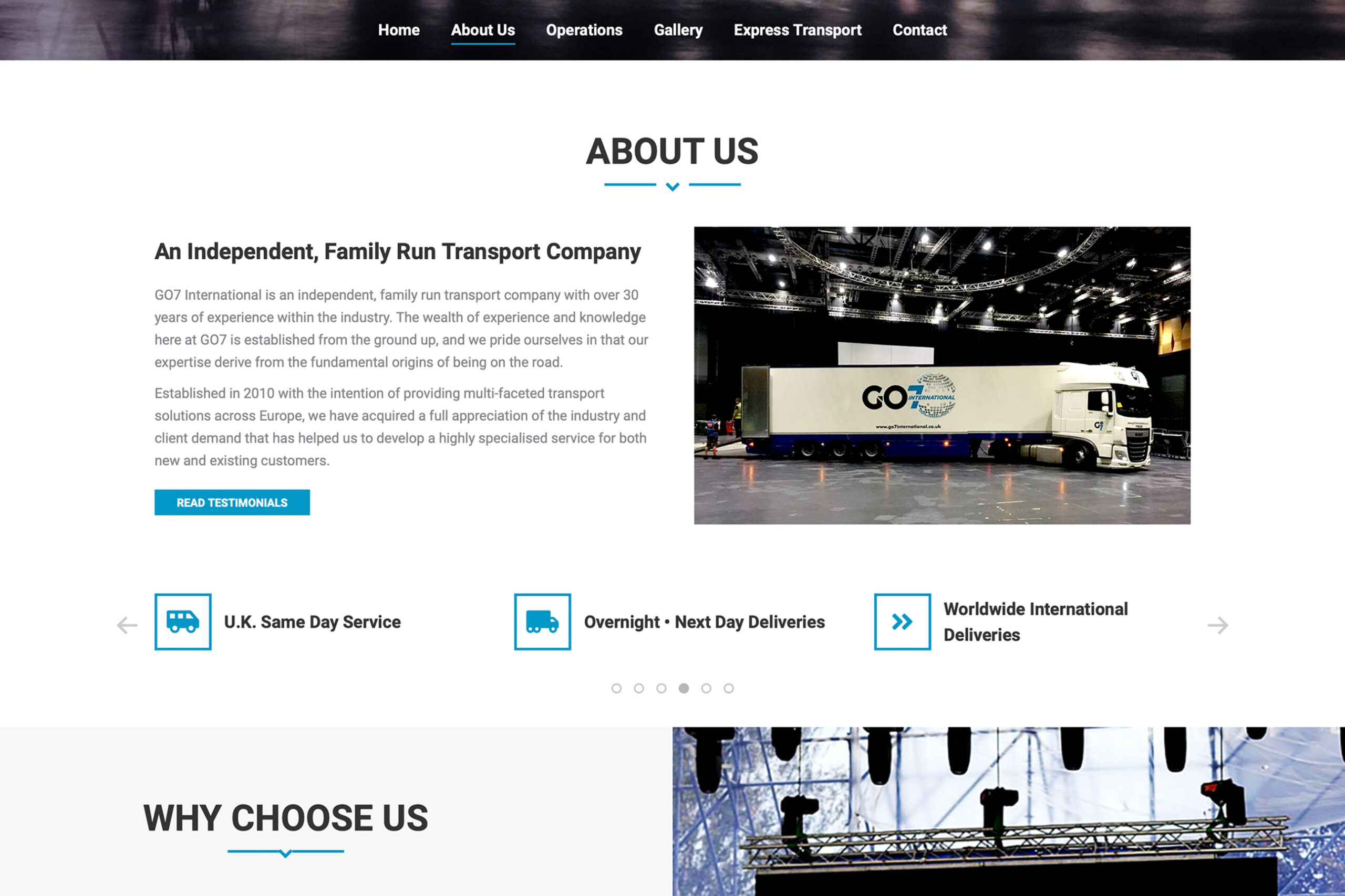 For Go7 International we developed a branding solution that was strong and dynamic, using heavy typography and bold angles. These were softened by the introduction of an abstract globe to reference Go7’s global delivery service. A sub-brand ‘Go7 icon’ was also created for when more subtle brand reinforcement and application was required. The website design became an extension of these design cues, and, like the overall ethos of the company, was easily to navigate and quick to deliver.