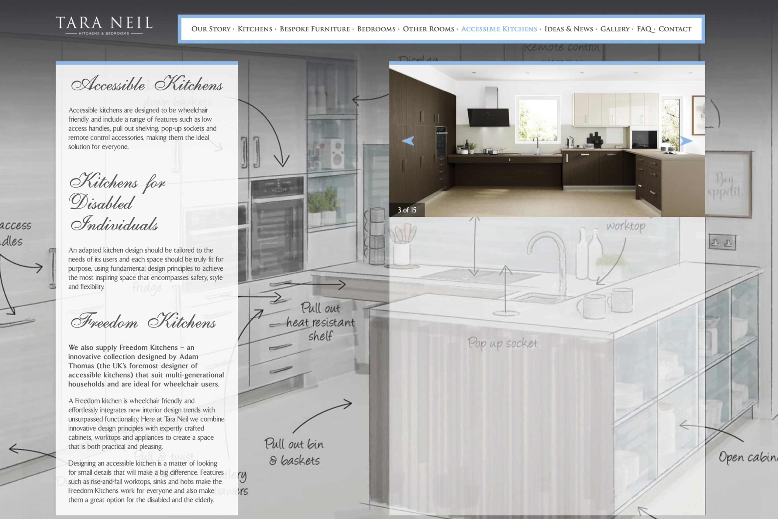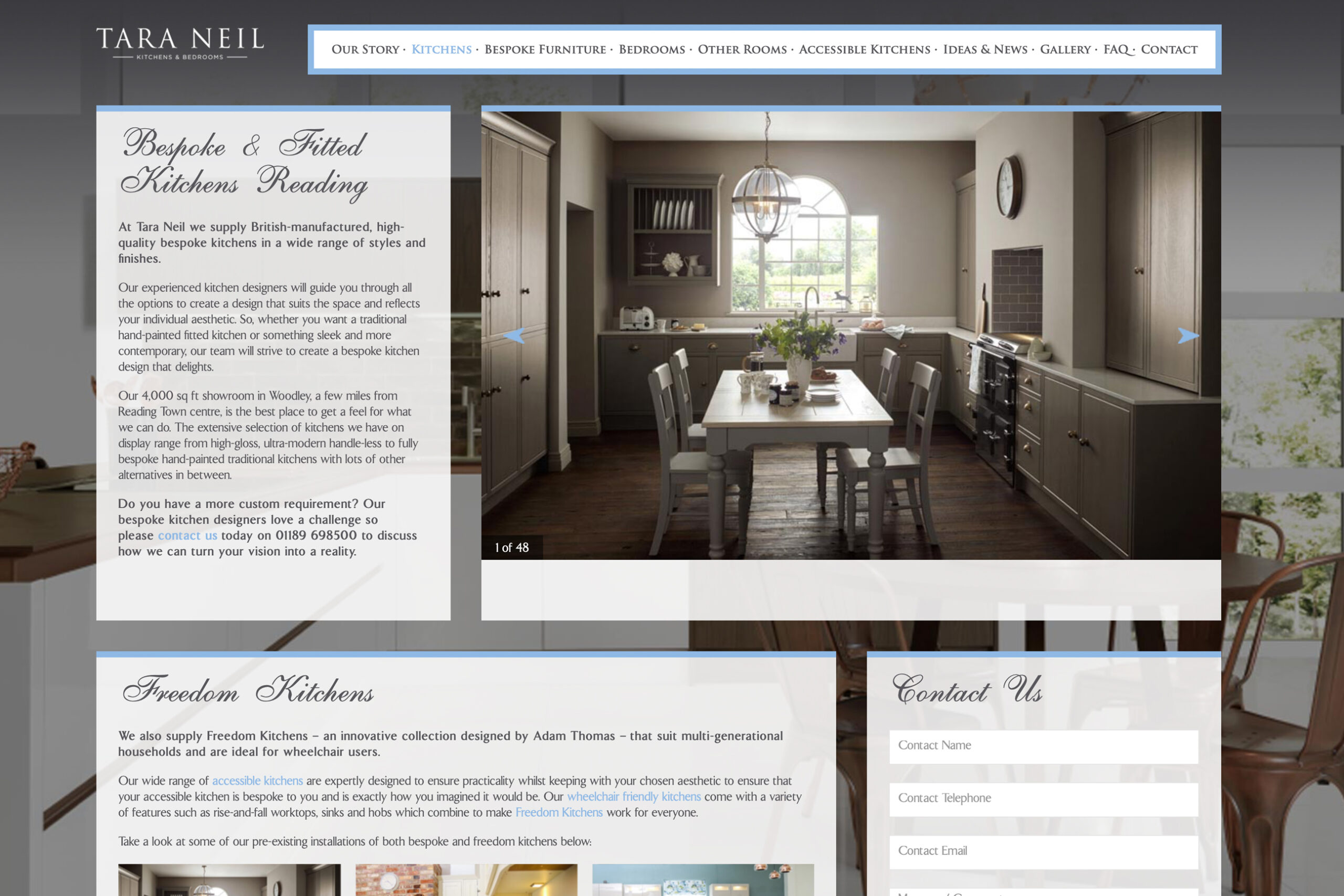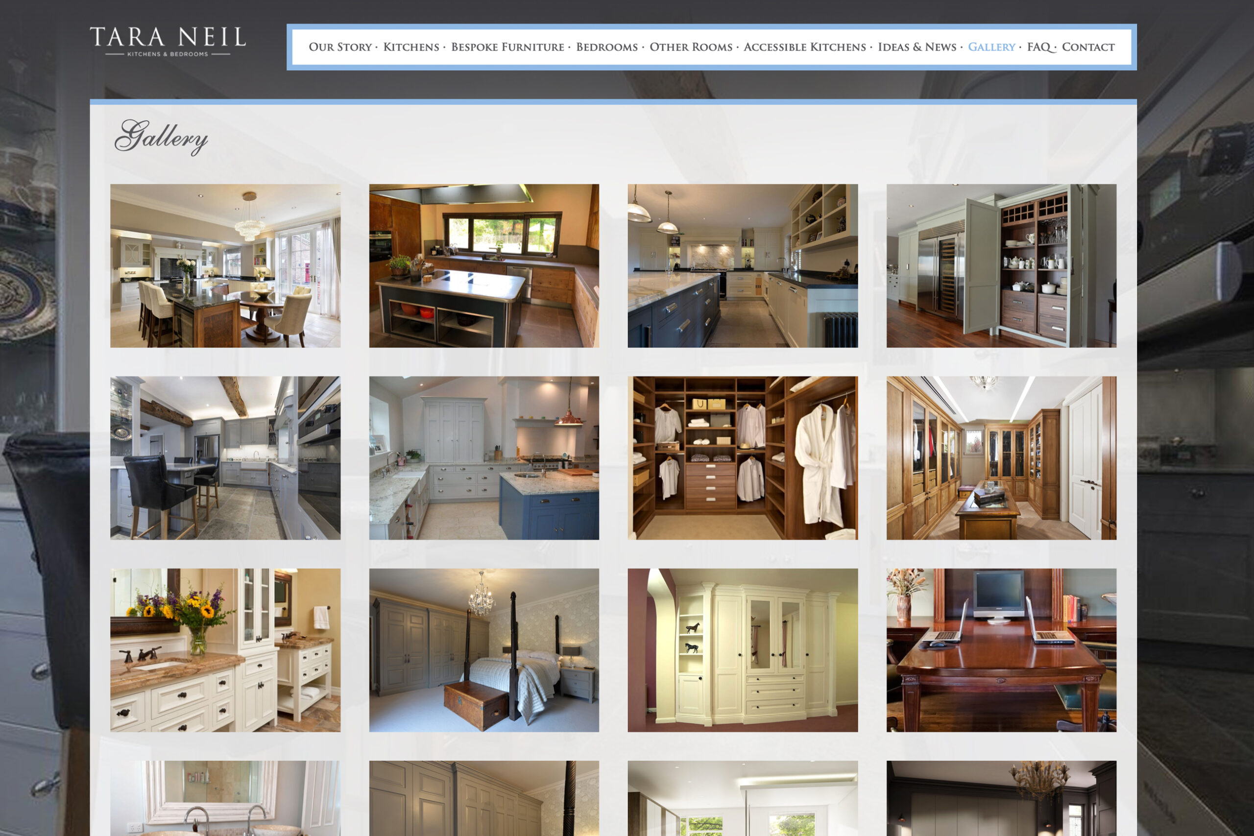 Like the bespoke crafted furniture produced by Tara Neil, Alchemist developed a branding solution that was built to last. Mirroring the concept of traditional cabinetry sitting side by side with cutting edge appliances, a logotype design utilised a classic font for the company name with a contemporary font for the brand descriptor. This design theme of a modern blending with classical became an important influence, and was carried through into the design of their website.